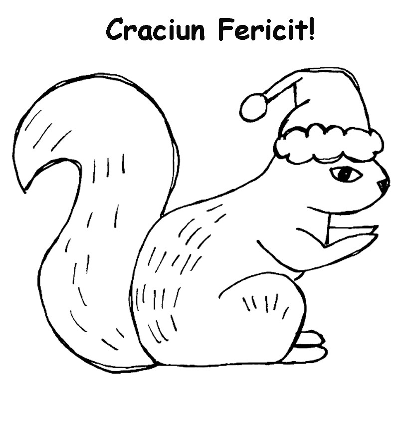 Descriere: Coloreaza o veverita costumata de Craciun care face urari!