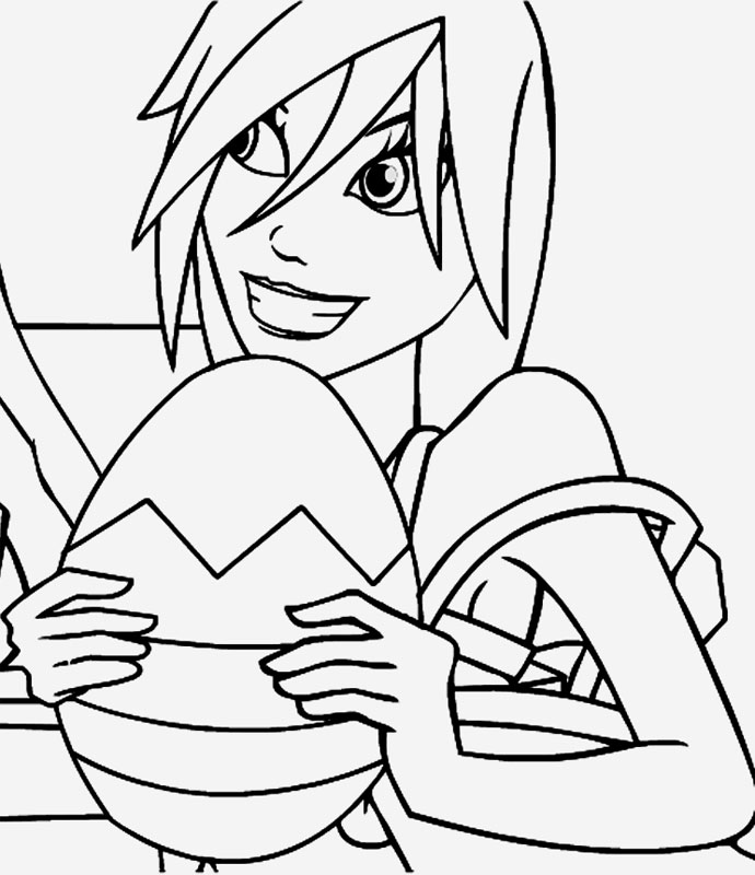 Descriere: Plansa de colorat cu Barbie si oul de Pasti din ciocolata.