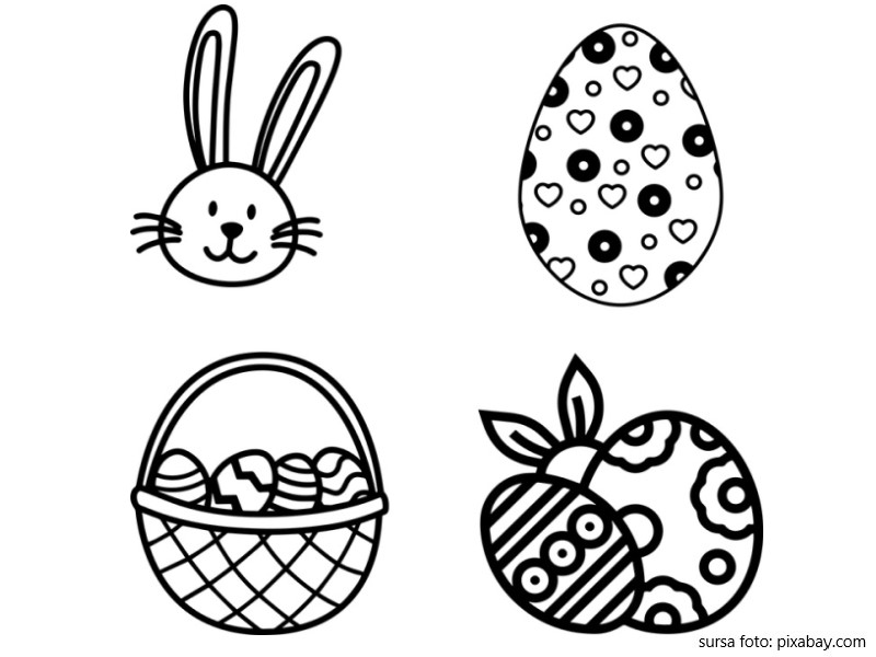 Descriere: Plansa de colorat cu iepurasul, cosul si ouale de Pasti.
