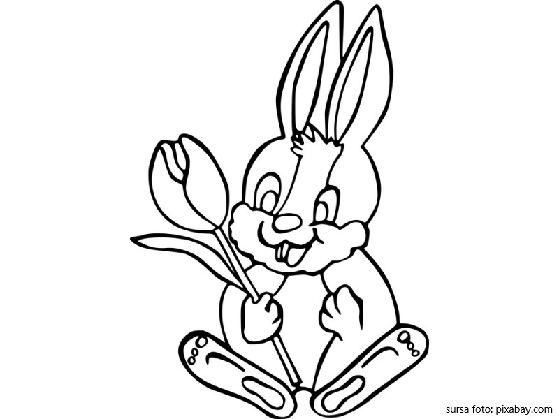 Descriere: Plansa de colorat cu iepurasul cu lalea, vestitorul Pastelui.