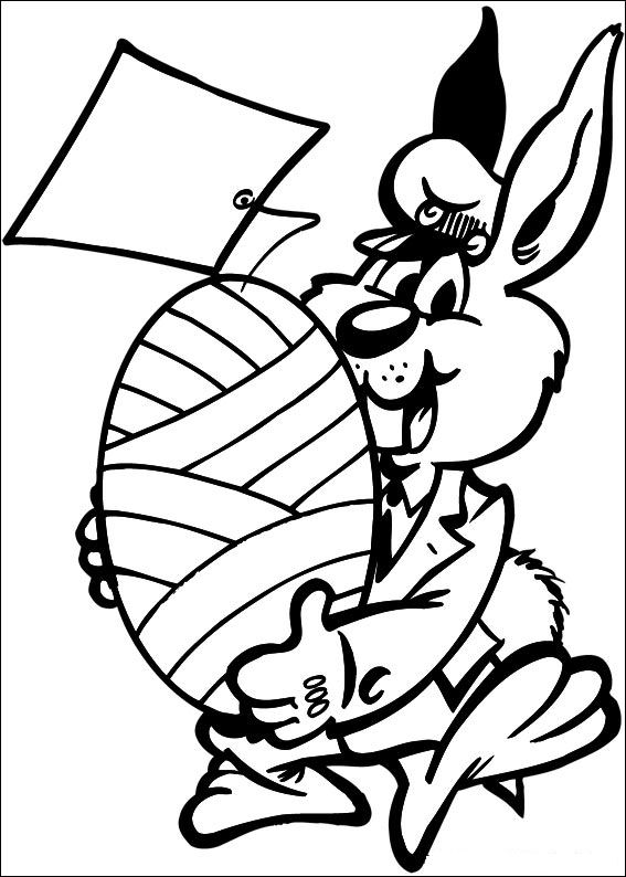Descriere: Plansa de colorat de Paste cu iepurasul de Paste facand o livrare.