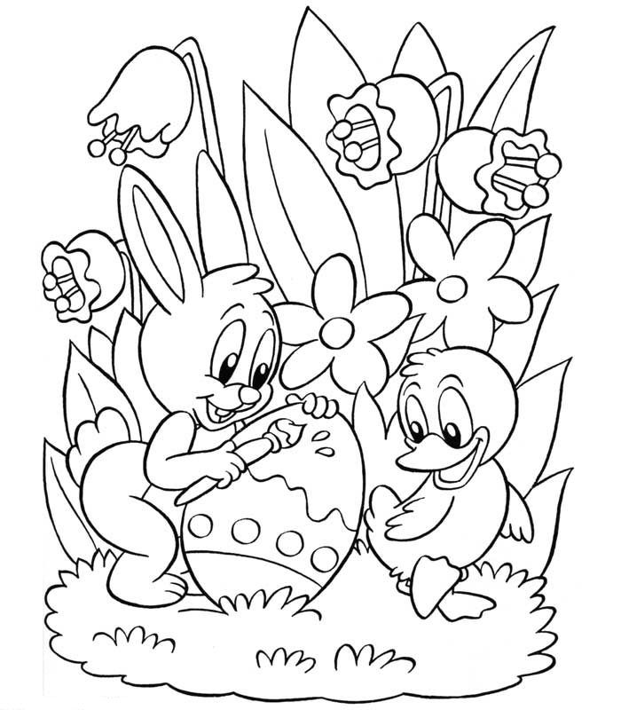 Descriere: Plansa de colorat de Paste cu iepurasul si ratusca.