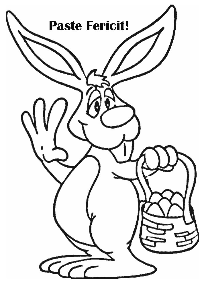 Descriere: Plansa de colorat cu iepurila si cosul cu oua de Paste.