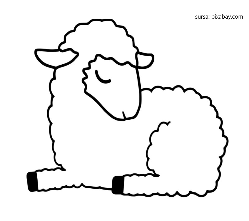 Descriere: Plansa de colorat cu un miel, simbolul Pastelui.
