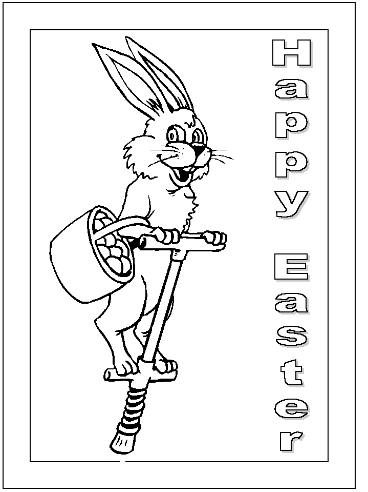 Descriere: Plansa de colorat de Paste cu iepurasul saltaret.