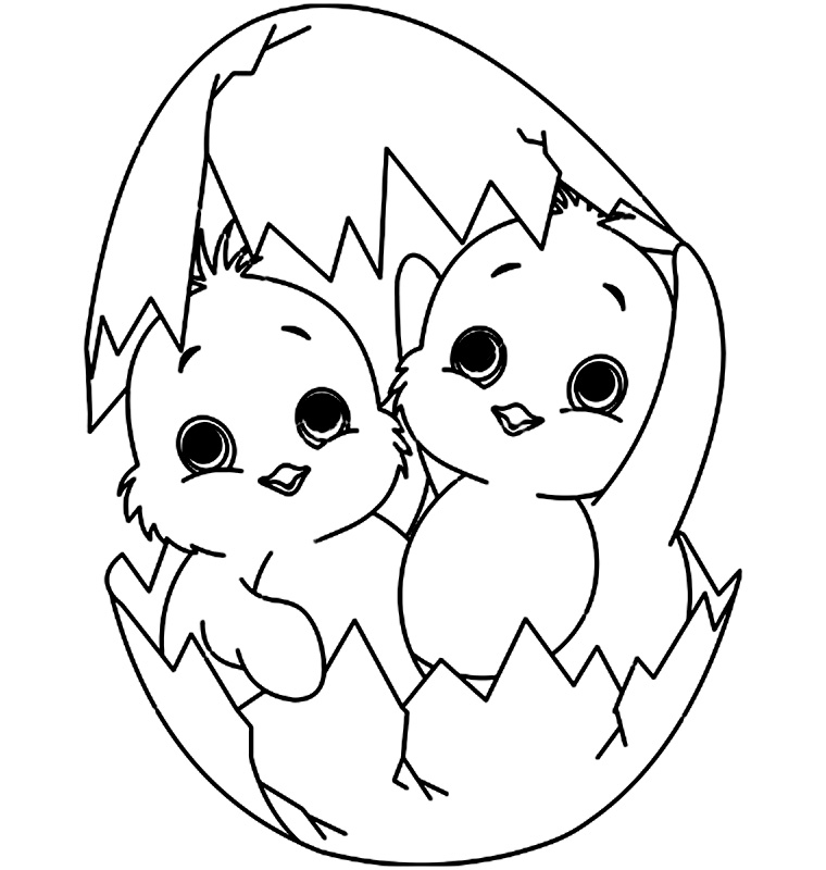 Descriere: Plansa de colorat cu un ou ce are doi puisori.