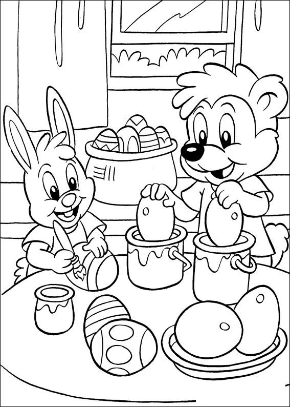 Descriere: Plansa de colorat de Paste cu iepurasul colorand oua.