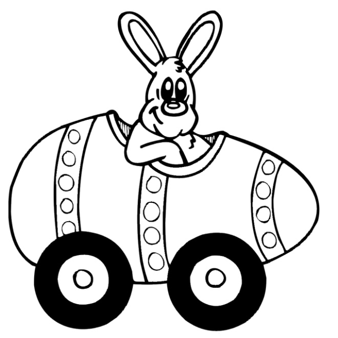 Descriere: Plansa de colorat cu un ou de Pasti cu roti care il plimba pe iepuras.