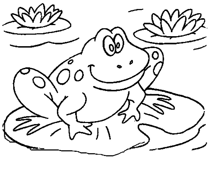 Descriere: Plansa de colorat cu o broasca care este fericita ca are numai nuferi in jurul sau.