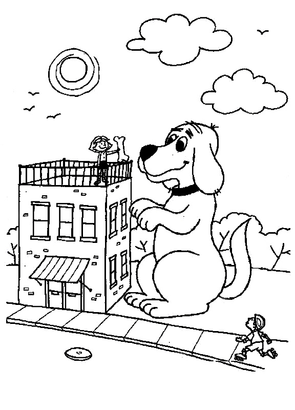 Descriere: Coloreaza plansa cu un catel urias care este hranit de copii din cartier.
