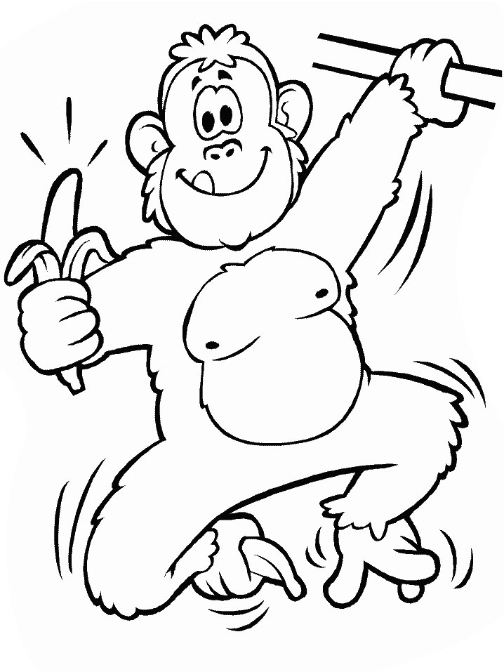 Descriere: Plansa de colorat cu o maimuta care se pregateste sa manance o banana.