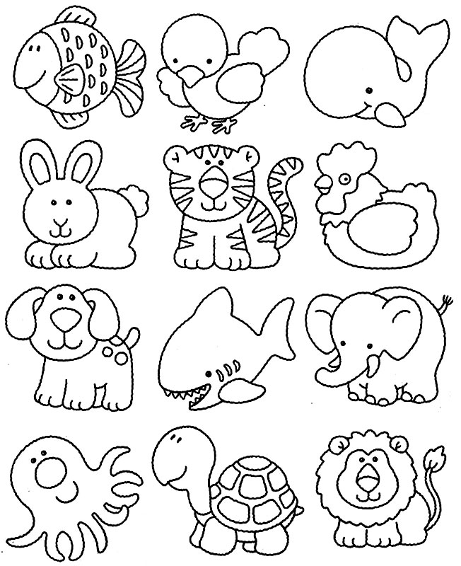 Descriere: Coloreaza animalele din plansa! Leul, elefantul, cocosul, balena, gaina, tigrul, rechinul, testoasa, caracatita, catelul, iepurasul si pestele te asteapta sa ii colorezi.