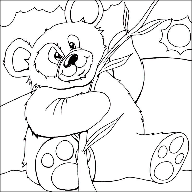 Descriere: Plansa de colorat cu un urs panda vesel.