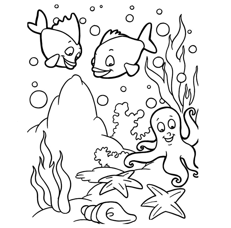 Descriere: Coloreaza pestii, stelele de mare, melcul si caracatita din ocean.
