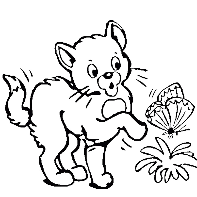 Descriere: Coloreaza pisica si fluturasul din aceasta plansa cu animale.