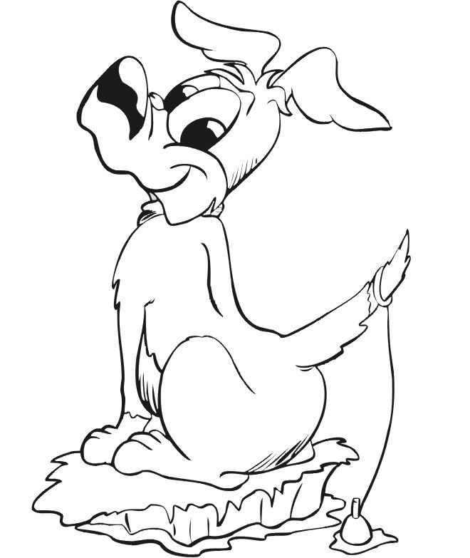 Descriere: Coloreaza plansa cu un catel care pescuieste.