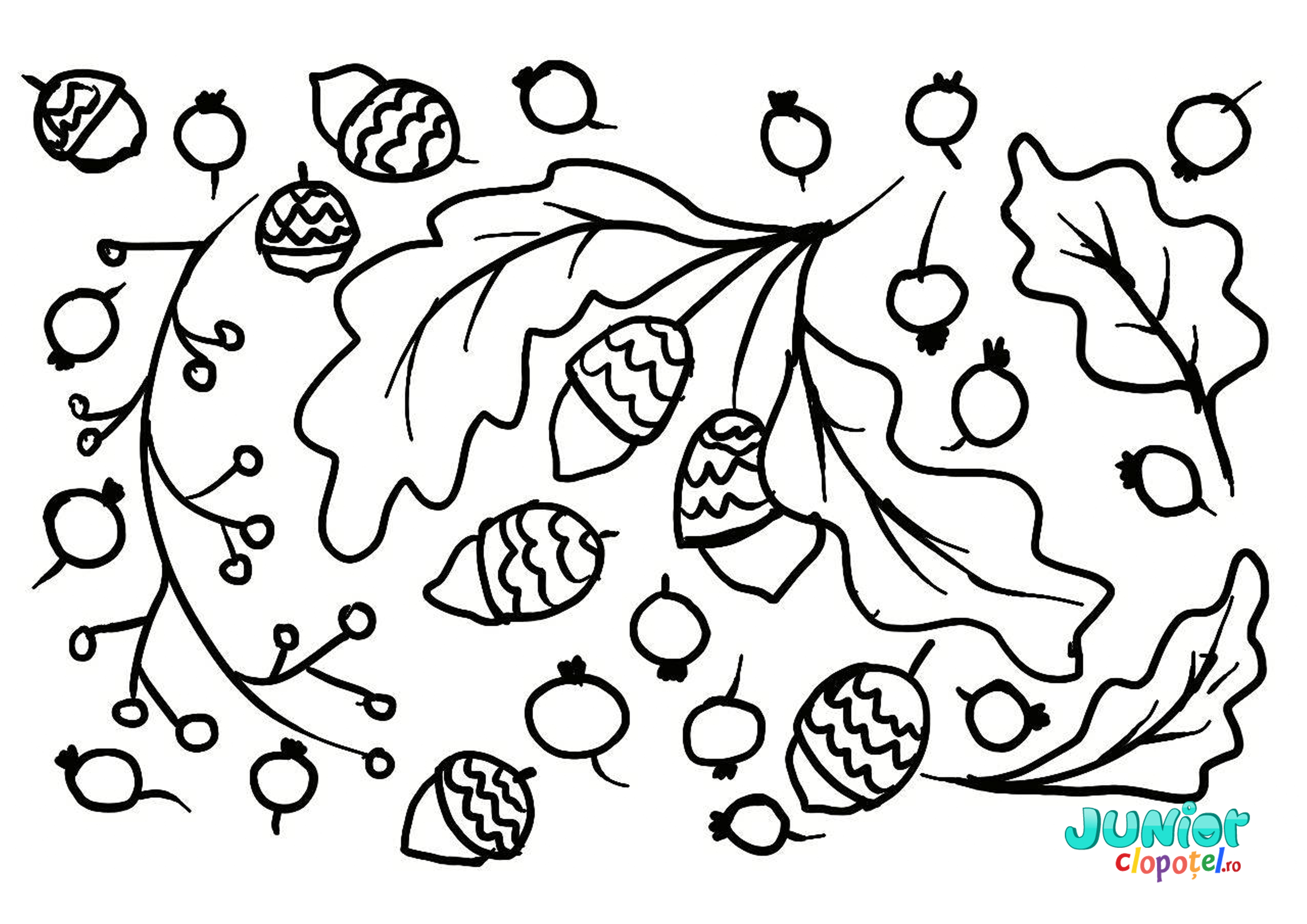 Descriere: Plansa de colorat cu frunze si ghinde.
