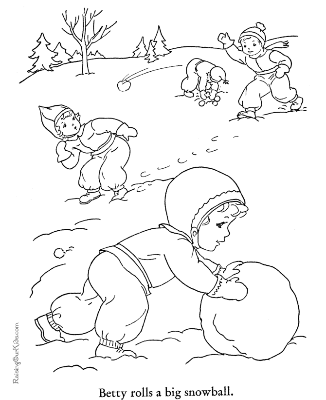 Descriere: Copii au iesit la joaca si pregatesc un om de zapada. Coloreaza aceasta scena de iarna!