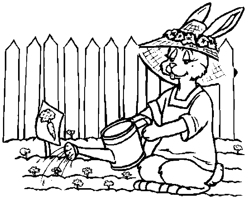 Descriere: Plansa de colorat cu iepurasul plantand morcovi.