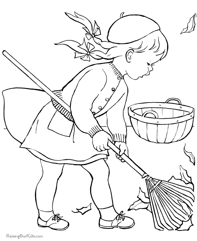 Descriere: Fetita strange frunzele gramada, vantul vine si le imprastie la loc. Deseneaza aceatsa plansa de toamna!