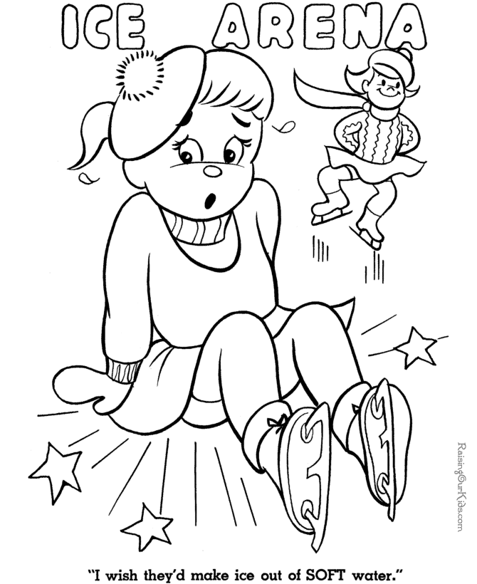 Descriere: iarna, cazaturile sunt dese si amuzante. Deseneaza aceasta plansa de iarna cu fetita care cade pe gheata!