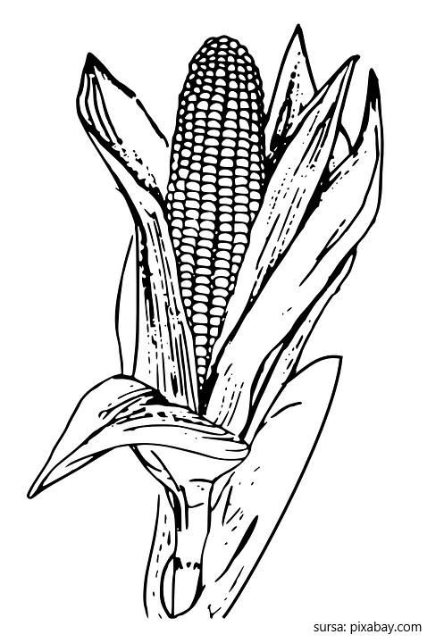 Descriere: Plansa de colorat cu unul din vestitorii toamnei, porumbul.