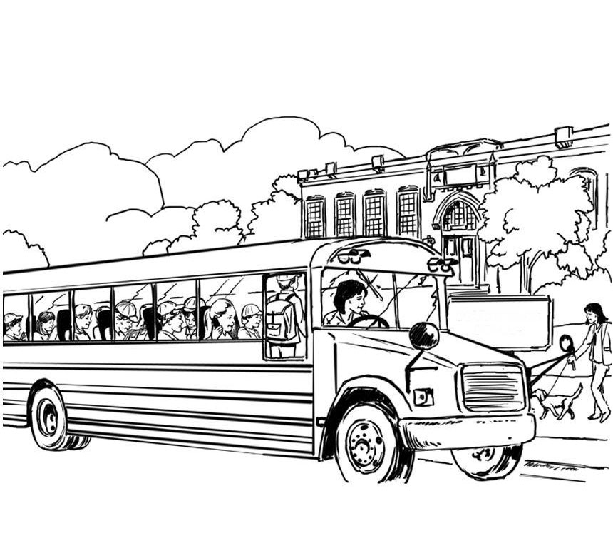 Descriere: Plansa de colorat cu un autobuz plin de copii care sunt gata sa inceapa scoala.