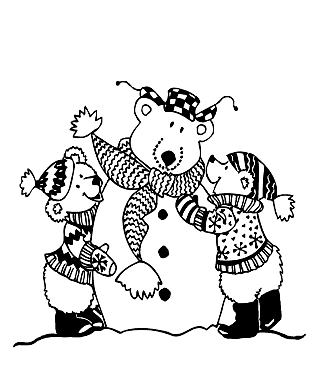 Descriere: Ursuletii infofoliti fac un om de zapada de toata frumusetea.