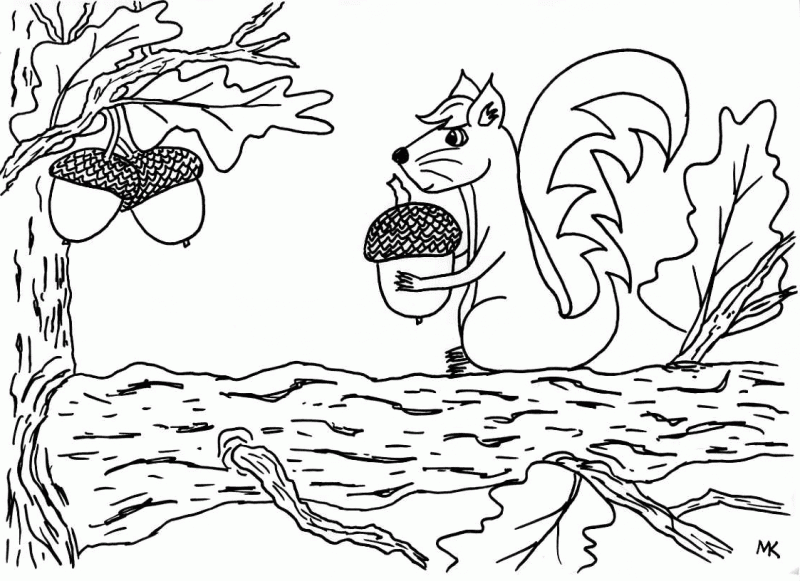 Descriere: Toamna veveritele isi fac provizii de ghinde. Coloreaza aceasta plansa cu anotimpuri.
