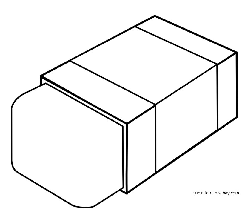 Descriere: Plansa de colorat cu o guma de sters, simbol al noului an scolar.