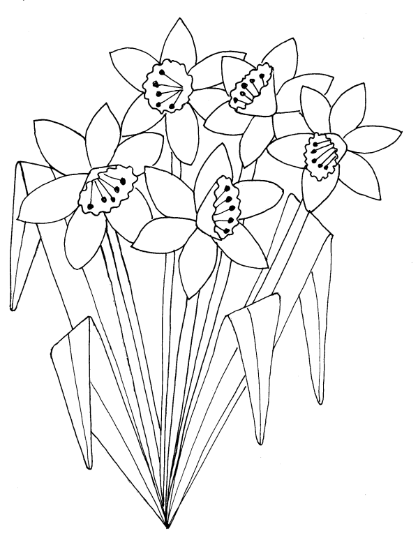 Descriere: Coloreaza plansa cu cele cinci narcise.