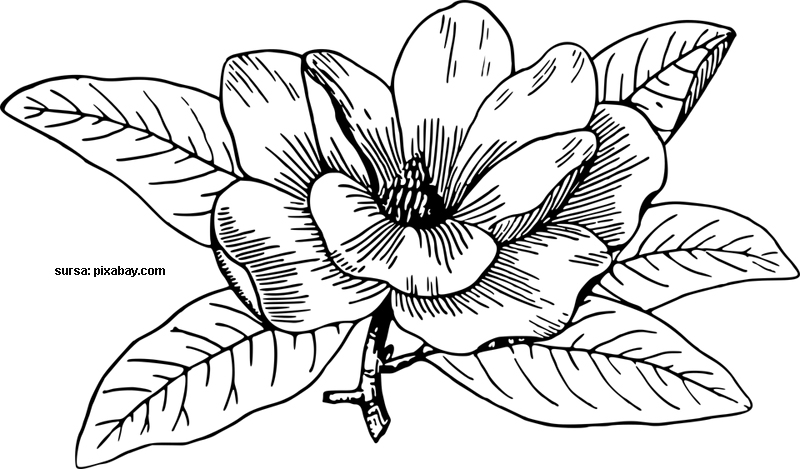 Descriere: Plansa de colorat cu o floare magnolie.