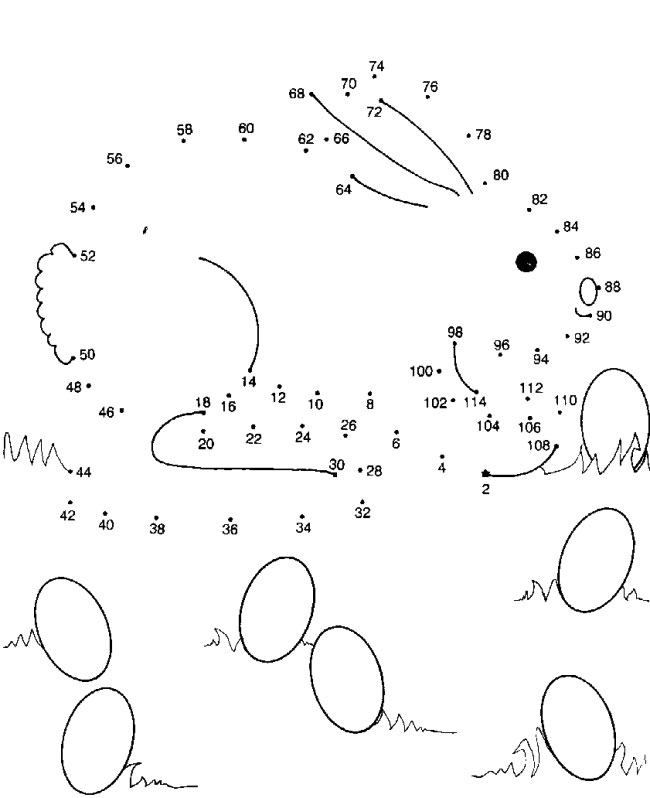 Descriere: Uneste punctele si afla cine este langa oua, apoi coloreaza plansa!