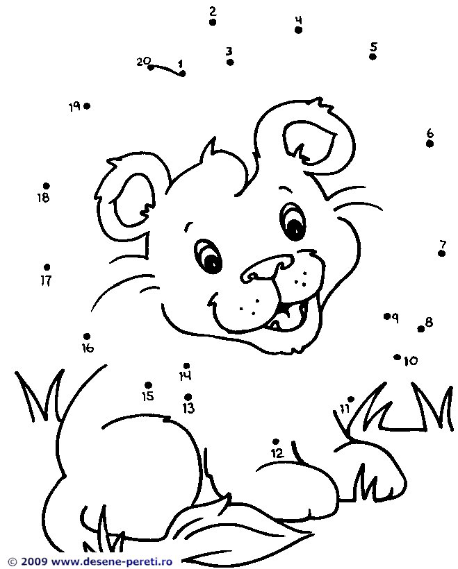 Descriere: Uneste punctele si apoi coloreaza puiul de leu din plansa.