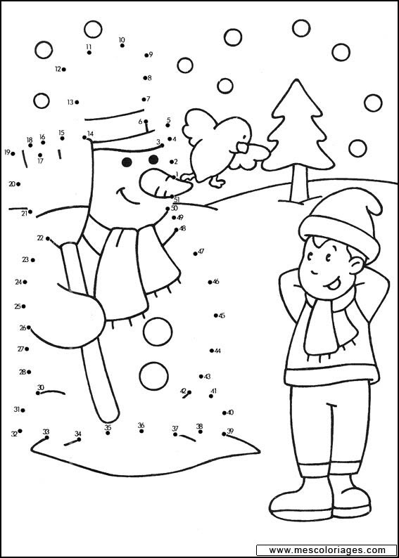 Descriere: Uneste punctele si coloreaza plansa cu omul de zapada.