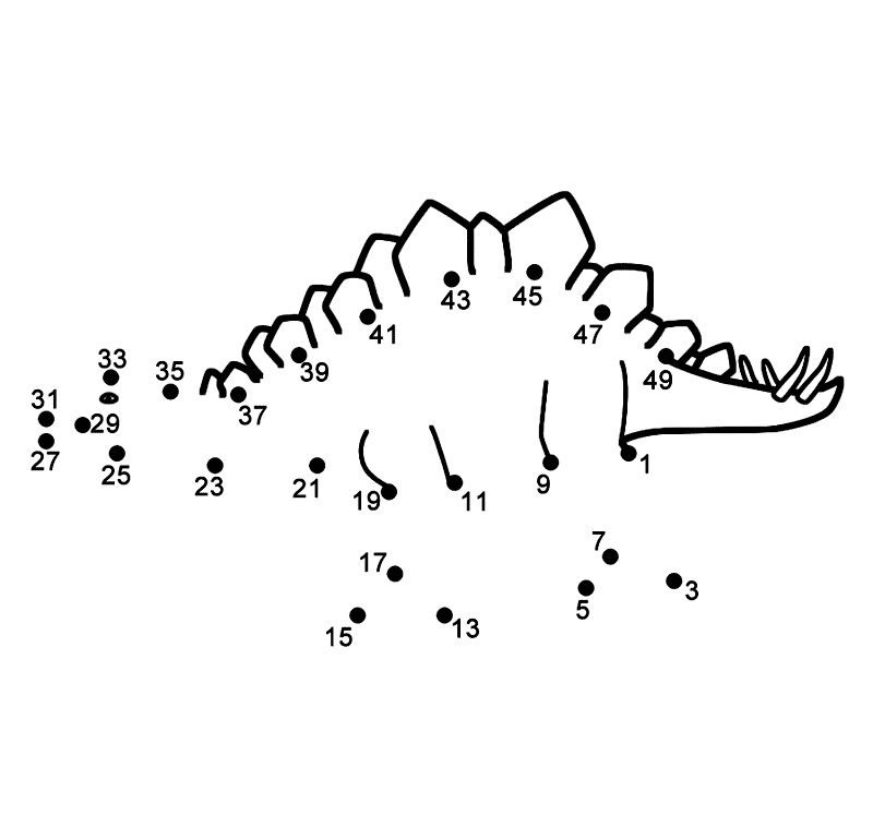 Descriere: Uneste punctele si afla cum arata dinozaurul stegosaurus.