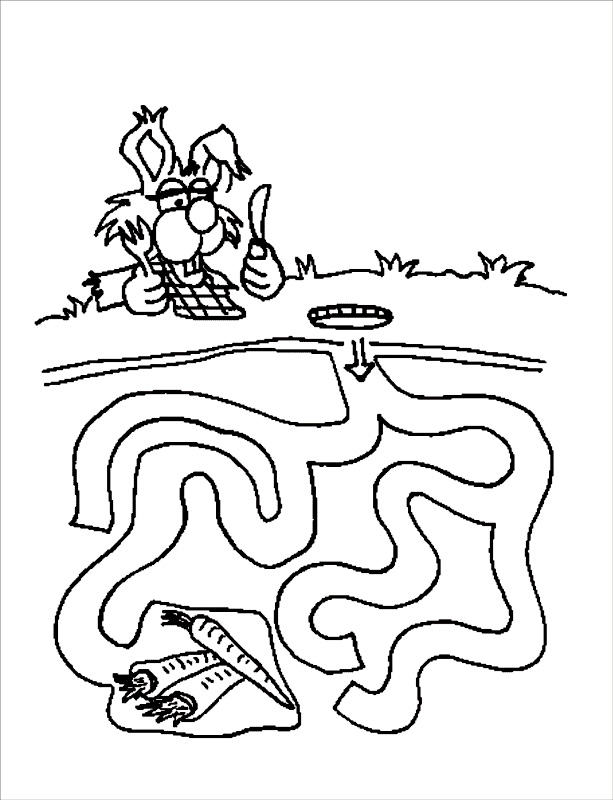 Descriere: Iepurasului ii este foame. Oare ce drum il duce catre morcovi? Coloreaza traseul catre morcovi si apoi plansa de colorat.