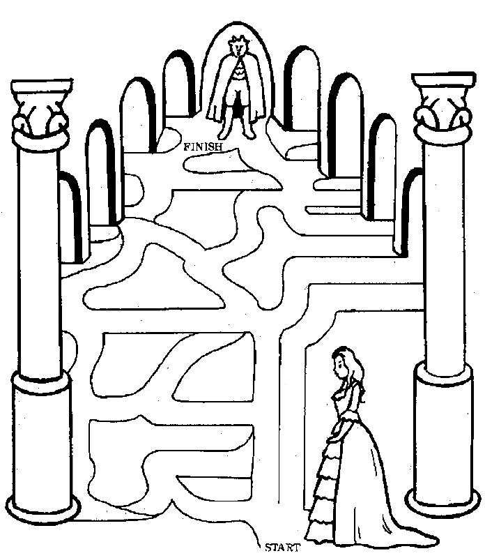 Descriere: Coloreaza traseul din castel pe care trebuie sa-l parcurga printesa catre rege.