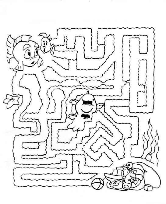 Descriere: Plansa de colorat cu pestisorul Nemo care trebuie sa ajunga la jucarii avand grija sa se fereasca de rechin.