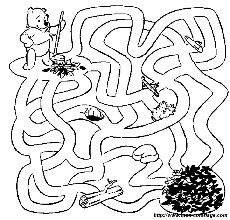Descriere: Ursuletul Winnie de Plus a strans frunzele cazute din pomi si trebuie sa le duca la locul lor. Coloreaza traseul pe care trebuie sa-l parcurga Winnie the Pooh in aceasta plansa de colorat.