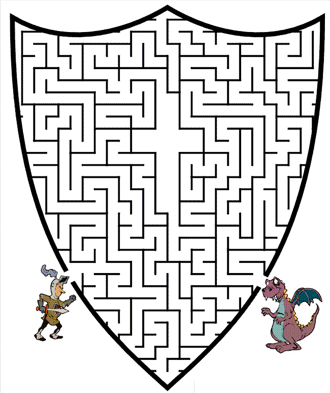 Descriere: Cavalerul si dragonul vor sa se intalneasca in lupta dreapta, dar scutul ii desparte printr-un labirint. Coloreaza drumul care face legatura intre cavalerul neinfricat si dragonul fioros.