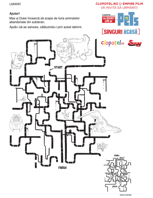 Descriere: Max si Duke sunt in conductele din subteran. Ajuta-i sa ajunga la FINISH evitand animalele furioase. Planse cu jocuri ce au personaje din animatia "Singuri acasa" distribuita de Empire Film.