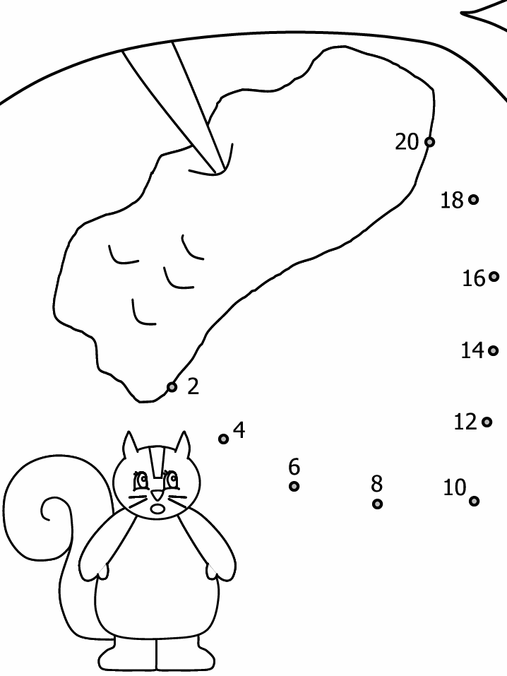 Descriere: Uneste punctele si coloreaza la ce se gandeste veverita.
