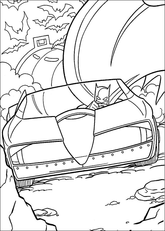 Descriere: Coloreaza-l pe Batman care urmareste cu masina banditii.