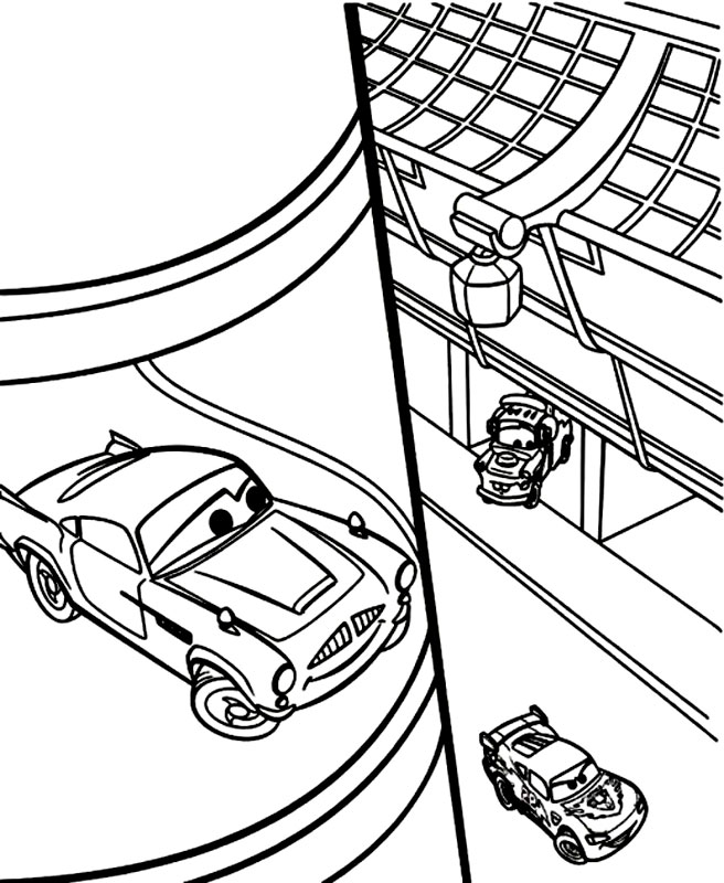 Descriere: Plansa de colorat cu Lightning McQueen si Mater spionati de Finn McMissile in animatia Cars 2.