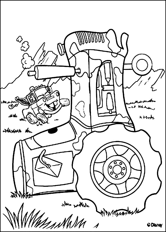 Descriere: Plansa de colorat cu Tow Mater care sperie tractoarele.