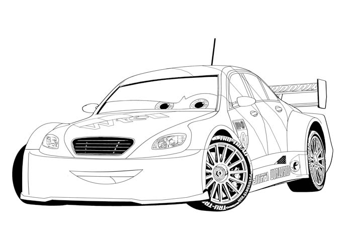 Descriere: Coloreaza plansa cu masina de curse Max Schnell din filmul Cars 2.