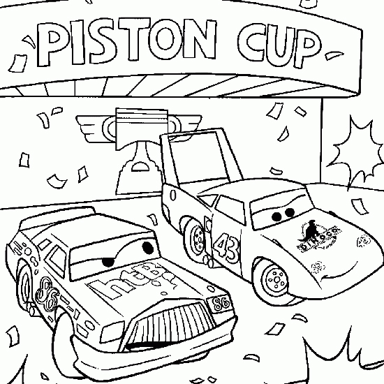 Descriere: Plansa de colorat cu Chick Hicks si The King pe podium la Piston Cup.