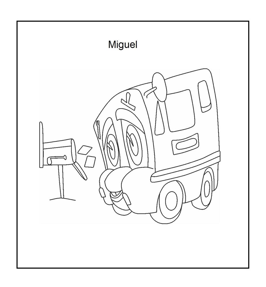Descriere: Plansa de colorat cu masina Miguel din animatia Finley and Friends.