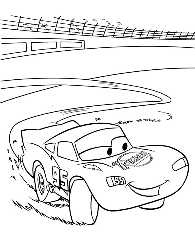 Descriere: Coloreaza plansa cu Lightning McQueen facand derapaje pe iarba.